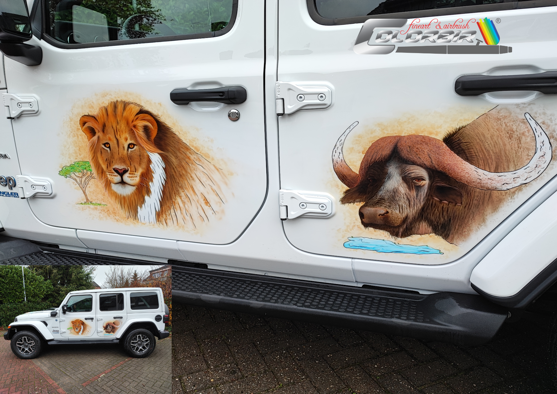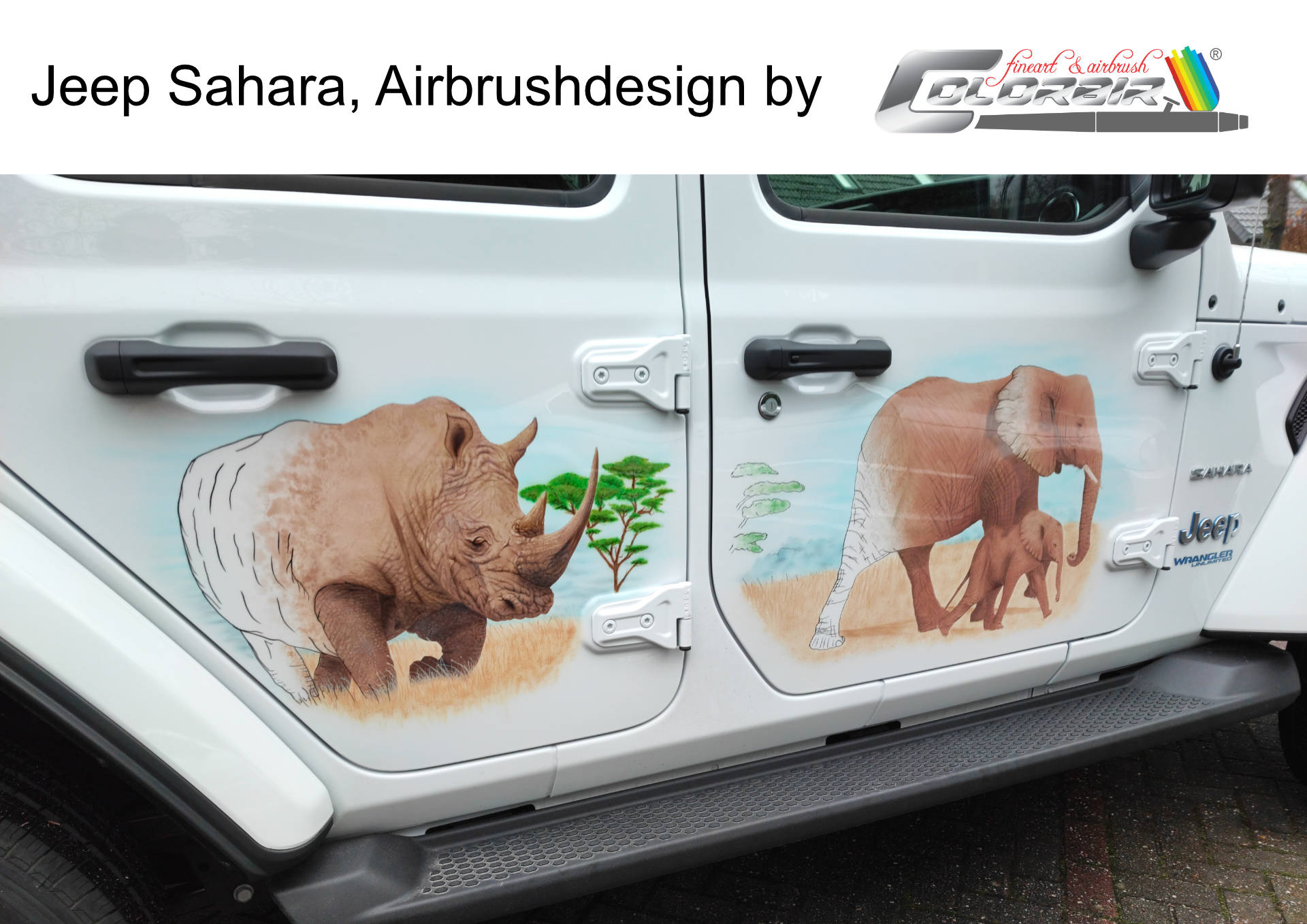 Jeep Sahara, Türen- und Motorhaubenlackierung im Afrika-Style